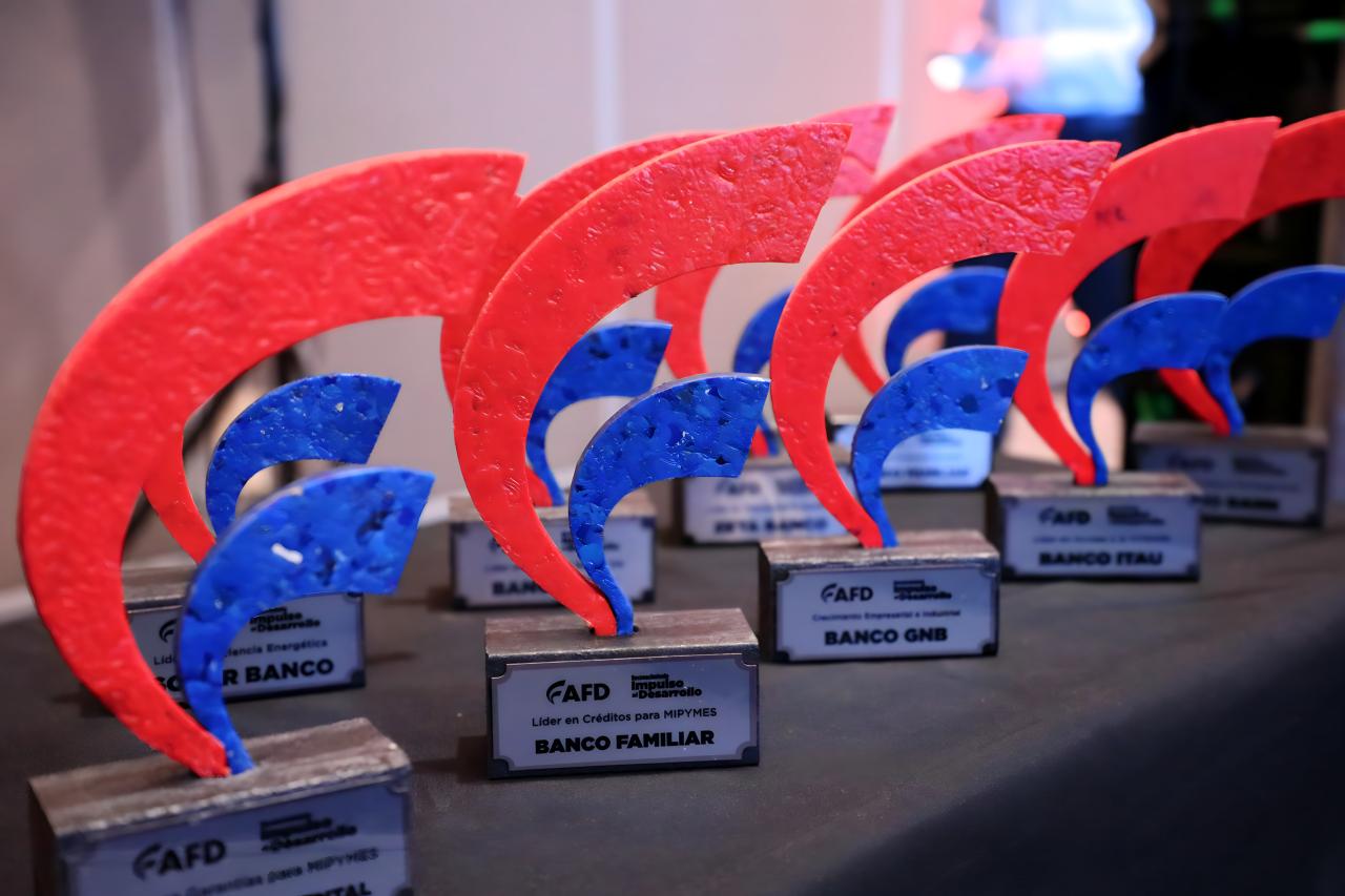 En el marco del Informe de Gestión, directivos de la AFD otorgaron reconocimientos a las Instituciones Financieras Intermediarias (IFIs) —bancos, financieras y cooperativas— que operan con la banca pública de segundo piso y que se han destacado en el otorgamiento de créditos y garantías en sectores como vivienda, MIPYMES, agroganadería, sostenibilidad, capital humano y financiamiento para mujeres, subrayando el impacto de estas entidades en el desarrollo del país.