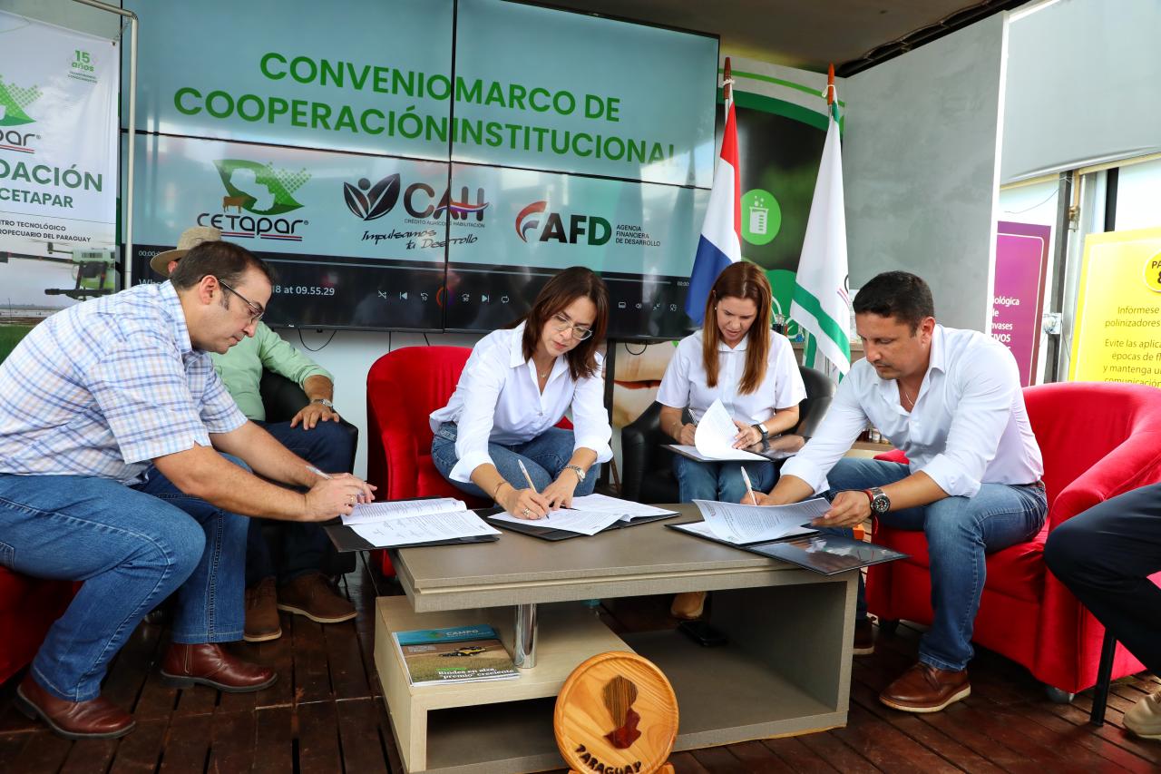 La Agencia Financiera de Desarrollo (AFD), el Crédito Agrícola de Habilitación (CAH) y el Centro Tecnológico Agropecuario del Paraguay (CETAPAR) suscribieron un acuerdo de cooperación en el marco del programa Jepytaso, durante la Expo Innovar 2026.